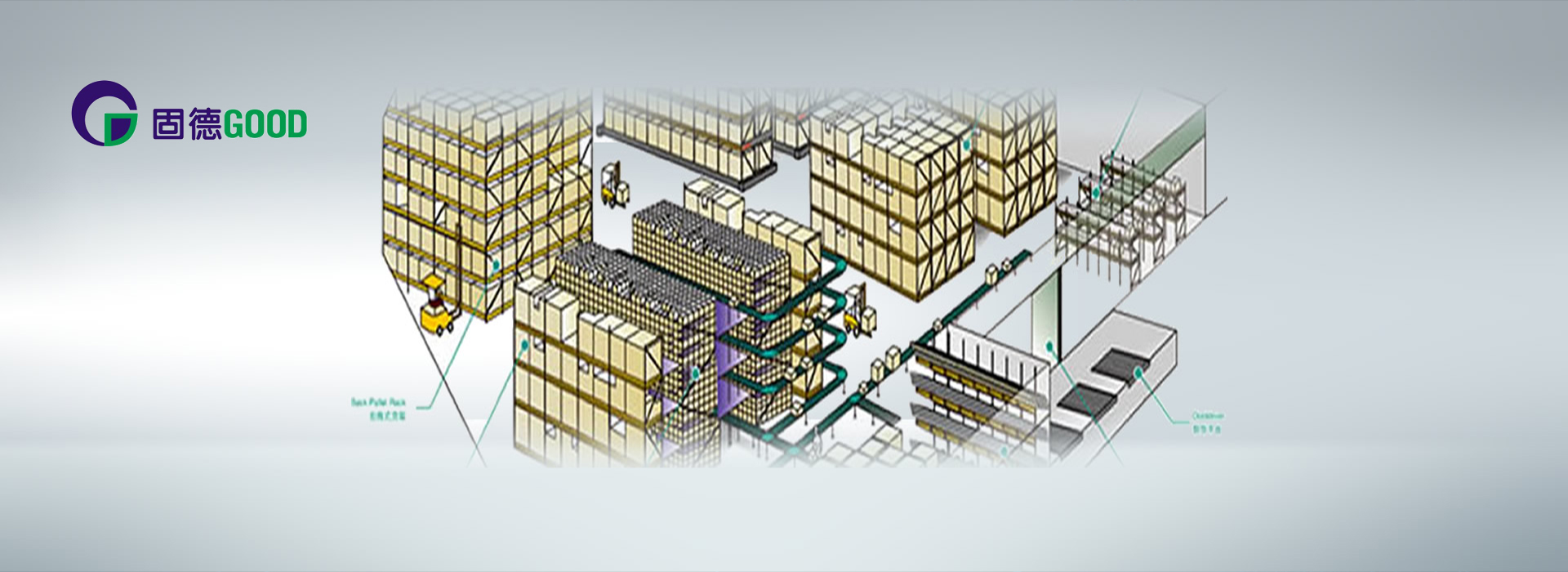 固德G00D:固德G00D工业科技有限公司公司致力于物流系统集成装备和物流信息技术、物流仓储配送等--站式整体物流解决方案的服务和物流设施制作公司。可为客户(场地布局设计,供应链包装整合设计,等物流专业管理咨询、第三方物流仓储配送等服务)